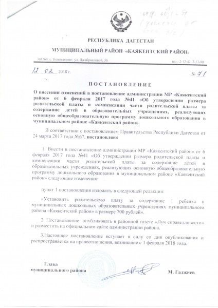 постановление об утв. порядка взимания род.платы (скачать) (посмотреть) (текст документа)
